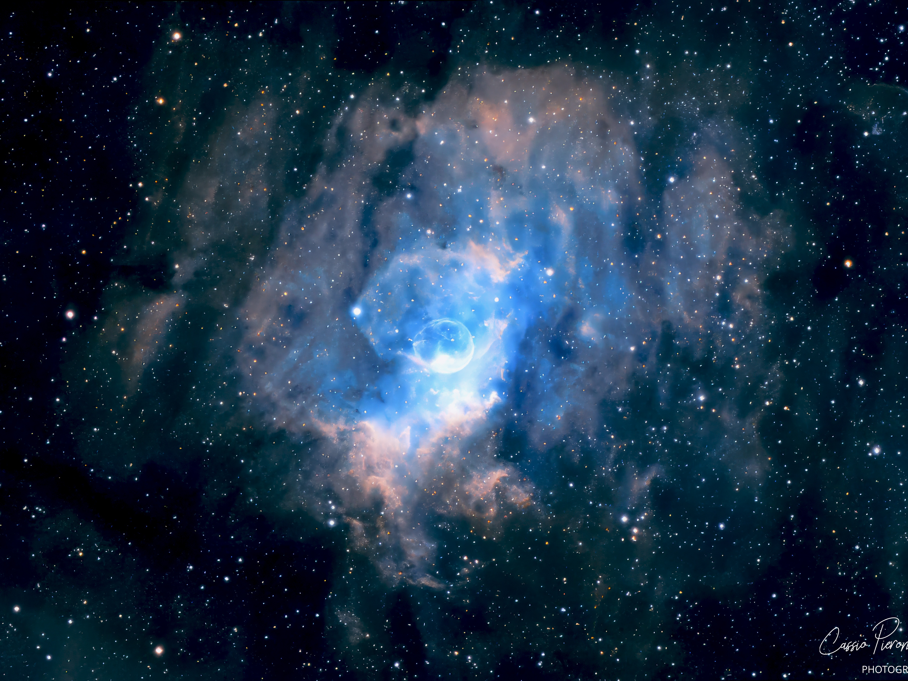 RCW 104 — a delicate bubble of ionized gas shaped by stellar winds, revealing intricate filaments in narrowband light.
